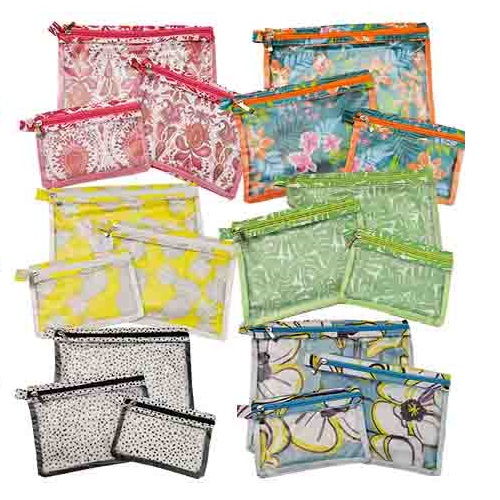 Blk/Wht Polka Dots, Blue w/ Flowers, Green, Pink Flower, Tropical, Yellow Pineapple
