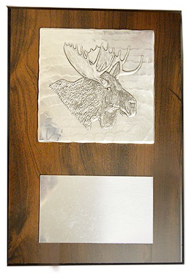 9” X 12” Wooden Plaque. 5 ½” X 3” Aluminum Engraving Plate (to be engraved locally)