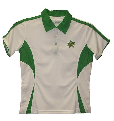 White with green trim – dry fit, 100% polyester